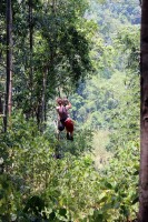 Šlo vlastně o jakýsi trek džunglí, který má jednu zvláštnost. Cesty některými údolími nevedou po spádnici dolů a zase nahoru, ale po ocelovém lanu natáhnutém přes celé údolí až na druhý kopec. Na jednom konci si připnete kladku a bezpečnostní karabinu, rozběhnete se a skočíte do prázdna. Setrvačnost a sklon lana roztočí kolečko na kladce a Vy se řítíte do prázdna. Země se vzdaluje, údolí se prohlubuje. Pak zařvete "wow, to snad není možný!". Adrenalin lítá tělem, Vy koukáte do hlubokého údolí a nohy Vám jen volně plápolají ve větru. Překrásná příroda pod Vámi, kopce zarostlé hlubokou džunglí kolem a... Stopadesátimetrová výška! Koukáte z té výšky na vrcholy stromů a tajíte dech. Neuvěřitelný pocit. A svištíte dál. Některá lana mají délku více než půl kilometru. Letíte třicet, čtyřicet vteřin…