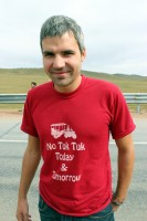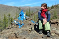 Den 2: Čekala nás téměř dvousetkilometrová cesta do národního parku Tsagaan Nuur. Ráno pro nás přijel bodře vypadající pán, naložil nás do jakéhosi ruského mikrobusu, ne nepodobného květinovým Volkswagenům a vyjeli jsme. Cesta byla ze začátku znovu až překvapivě dobrá, ale její kvalita se začala postupně zhoršovat. Posledních čtyřicet kilometrů jsme tak doslova plápolali ve větru a přepadávali přes sebe při sjíždění muld na cestě. Autíčko se často naklánělo až do neuvěřitelných třiceti stupňů a vzhledem k tomu, že byla cesta místy štěrkovitá, nebylo se čemu divit, že to zadní kolo nevydrželo a ruplo. Řidiči jsou tu pravděpodobně nejen na samotnou kvalitu komunikací zvyklí, ale defekty tu jsou na denním pořádku. Po cestě jsme narazili asi na dvacet aut a z toho tři měnili pneumatiky. My byli nuceni se k nim přidat a kolo našeho mikrobusu také vyměnit.