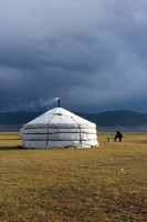 Den 1: Mongolsko je velké, potřebných cest mnoho a peněz málo. Podle této rovnice lze předpokládat, jaká je v této zemi kvalita komunikací. Přes devadesát procent komunikací, z celkové délky přes 11 tisíc kilometrů, jsou pouze prašné, nezpevněné "polňačky". Naše pětiset kilometrová cesta lokálním autobusem ovšem probíhala překvapivě hladce. Silnice byla většinu cesty relativně nová a po osmi hodinách jízdy jsme byli v cíli. Tím bylo pro tento den malé, dvacetitisícové městečko Tsetserleg, kde jsme měli připravený nocleh. Okolí, které jsme po cestě míjeli, dávalo znovu mysli spoustu prostoru pro snění. V těch nehostinných planinách posetých zvířaty tu a tam zářil ten známý bílý mongolský stan, zvaný jurta. Stál tam osamoceně, na kilometry daleko nic. A pak zase další jurta. Tito lidé mají tak odlišný způsob života, že je ho pro nás pravděpodobně nejen nem