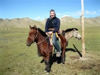 Kromě odřenin zadku a bolesti nohou (na kterých máte při běhu váhu) by tedy bylo ježdění naprosto pozitivním zážitkem nebýt poslední jízdy, kterou jsme měli absolvovat těsně před odjezdem. Muž, který s námi jel jako "dozor", vypadal naprosto neprofesionálně a tak se také choval. Koně bil, neuvázal sedlo pořádně, při výběru koně se nezdržoval zjišťováním v jaké je kůň náladě a stavu. Dostal jsem tak jednoho, který naprosto odmítal jet, bránil se a neustále se obracel. Chtěl jsem jiného koně, ale našeho dozorčího to nezajímalo, mlátil koně po hlavě i zadku, kůň se vzpínal a odmítal poslouchat. Sesedl jsem a muž se rozhodl, že koně zkrotí sám. Následně tak nasedl a pobízel ho jak mlácením, tak křičením tak dlouho, než se kůň rozběhl. Jízda to rozhodně nebyla hladká a bylo vidět, že kůň prostě v klidu nepojede. Odmítl jsem tak na koně znovu nasednout a muž mi chtě nechtě přivedl druhého. Ten vypadal na pohled klidně, ovšem jen co měl udělat první krůčky, prudce vyrazil a utíkal jako splašený až do ohrady. Vážně jsem myslel, že se na něm neudržím. Nic nepomáhalo. Kůň neslyšel ani na pokyny, ani na přitahování opratí. Dřevěné sedlo nemá žádnou možnost se držet, takže jsem se snažil udržet na koni stůj co stůj jen s pomocí opratí a postojem. S tím, jak se blížil k ostatním koňům, jsem navíc myslel, že je vyplaší, nebo oni jeho a situace bude ještě horší. Nespadl jsem. Zázrakem:) Potom, co se kůň vrátil k ostatním, z ničeho nic zastavil a bylo možné z něj i bezpečně sesednout. Dozorce pomalu dorazil až ke mně, řekl, že koně zkrotí, ale já už na to neměl náladu. Ten člověk vůbec nevěděl, co dělá. Odmítl jsem tedy jet a zůstal v jurtě. Na koně tak Lucka vyrazila jen s Holanďankami. K mému překvapení se ovš