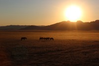 Den 3: Je večer, odpočíváme v jurtě a posloucháme praskání dřeva v kamnech. Je tu příjemné teplo, přestože venkovní teplota klesla až do jednociferných hodnot. Dnes jsem jel poprvé v životě na koni. Ne, že bych snad ještě nikdy na konci neseděl, ale jízda na poníkovi, kterého vede v kruhu "kolotočář" na pouti, bych asi jízdou nazývat neměl.