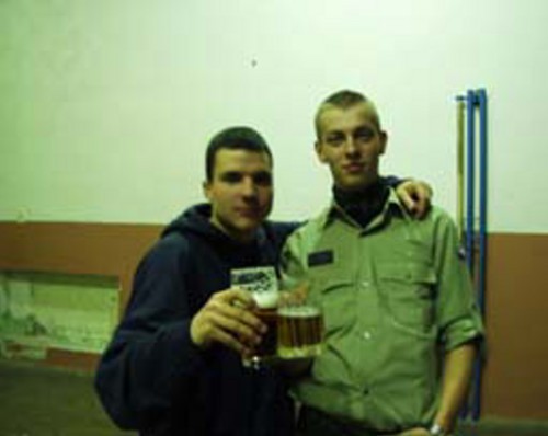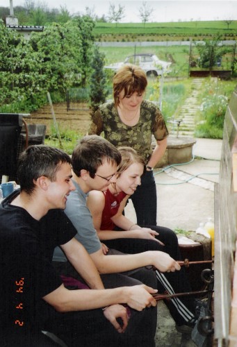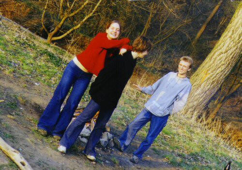 Fotka z 6. třídy - primy na gymnáziu. Vojta, já, Wossik a Ptáček