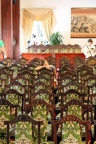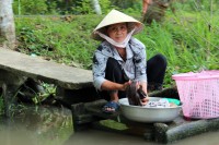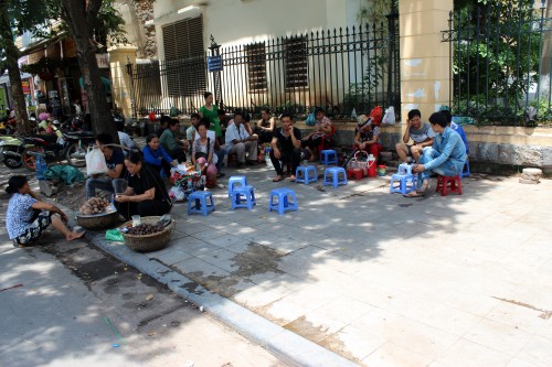 vietnamská siesta - všude odstavené motorky a oběd na silnici