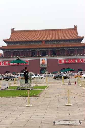 osamocený voják strážící pořádek na Náměstí Nebeského klidu