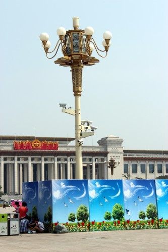 Náměstí Nebeského klidu a realita - pět kamer na každém sloupu