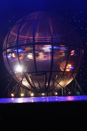 pět motorek kroužících v jedné kleci