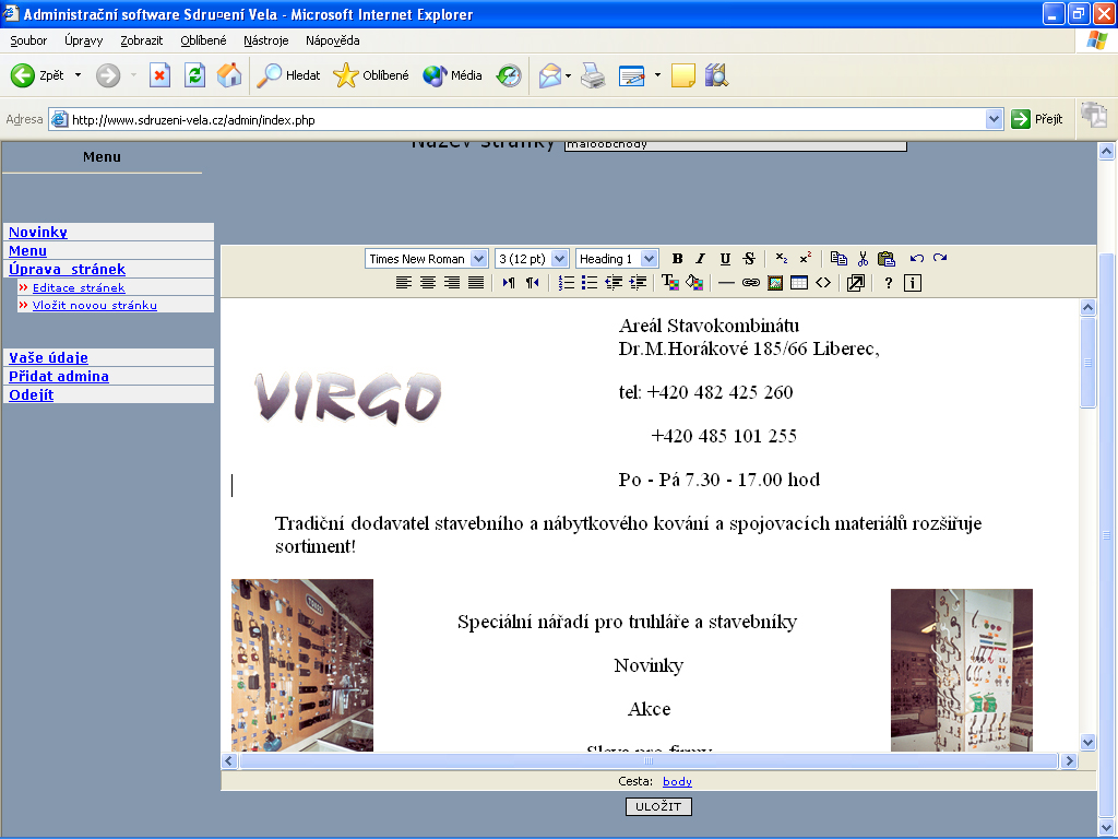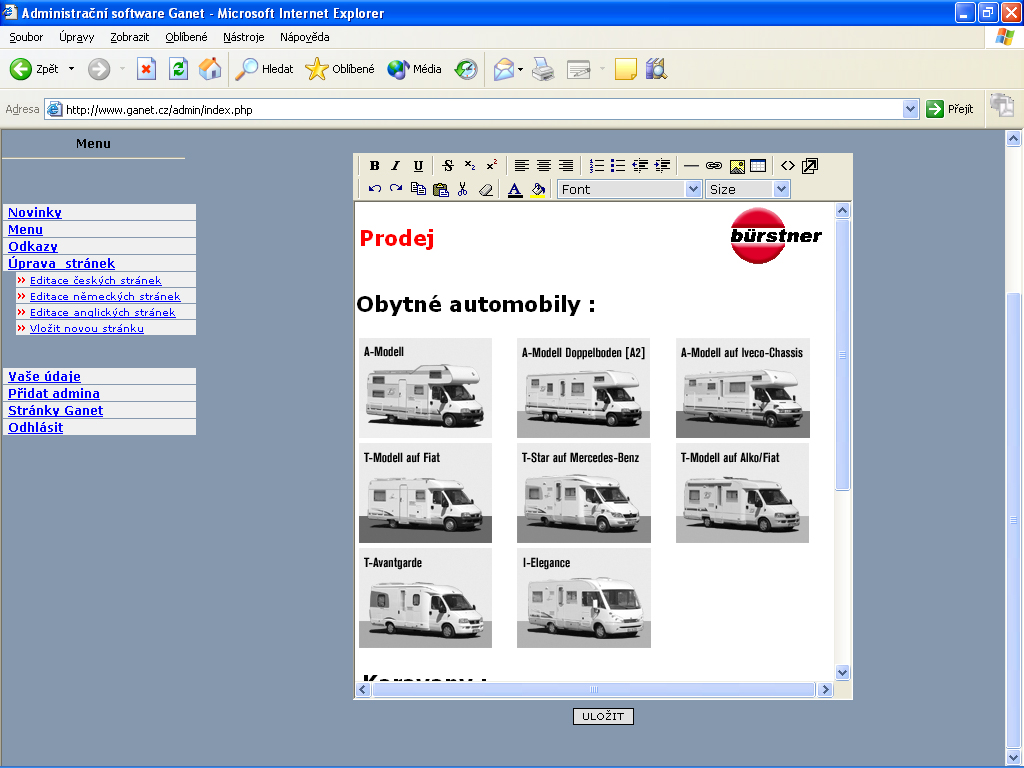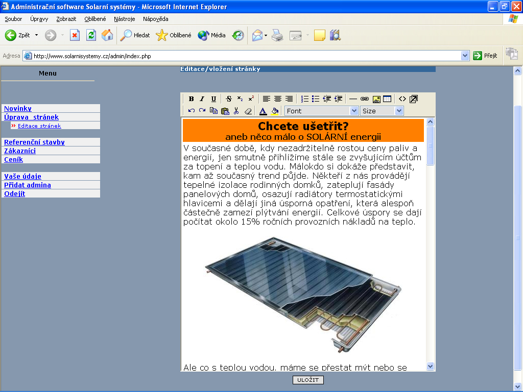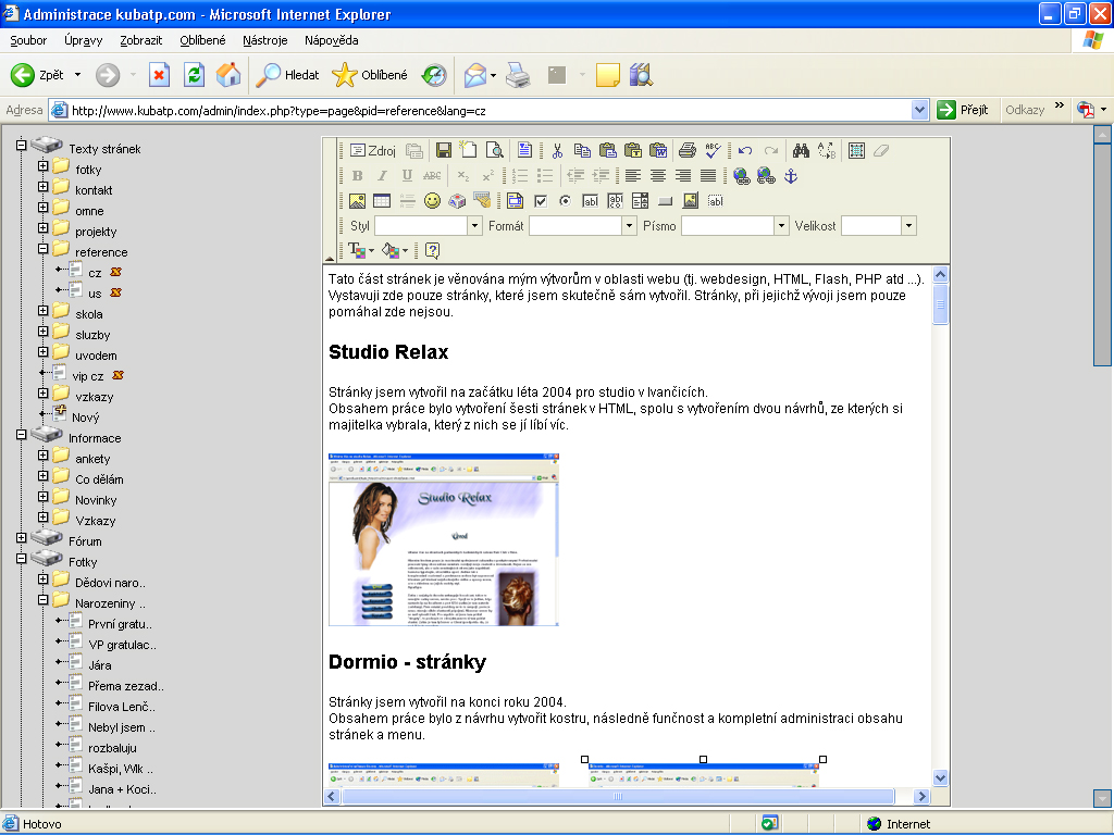 Ke stránkám existuje také administrace, kterou používám pouze pro své účely a kterou snad brzy také zpřístupním Vám, aby jste se mohli přesvědčit, jak snadné je tyto stránky doplňovat a přepisovat.