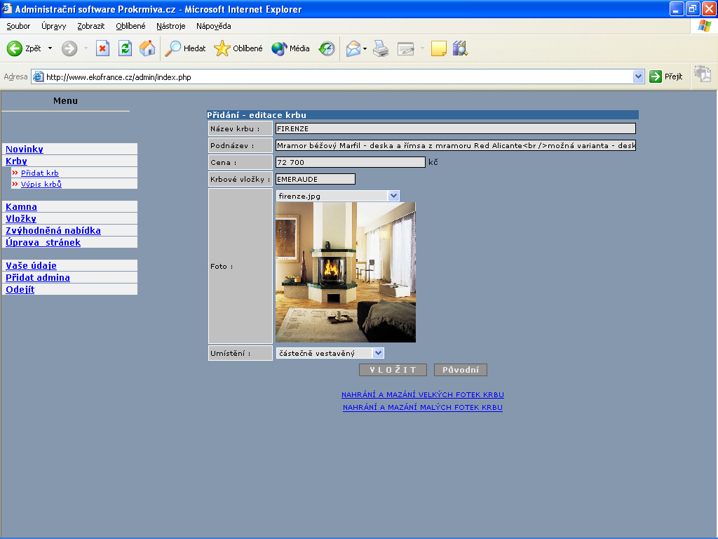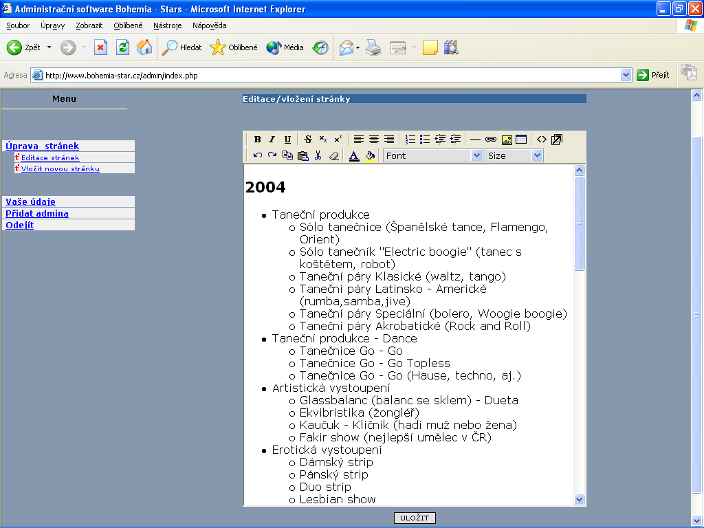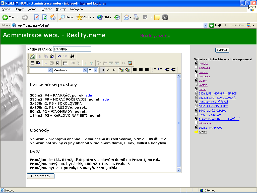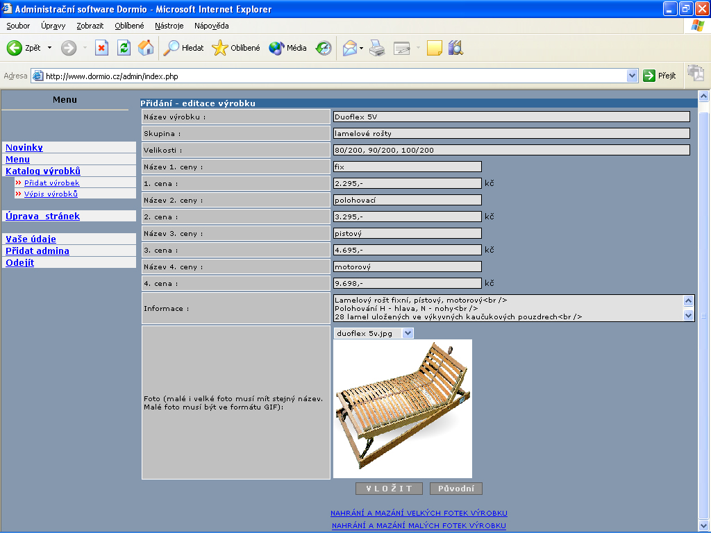 Ke stránkám existuje také administrace, kterou používám pouze pro své účely a kterou snad brzy také zpřístupním Vám, aby jste se mohli přesvědčit, jak snadné je tyto stránky doplňovat a přepisovat.